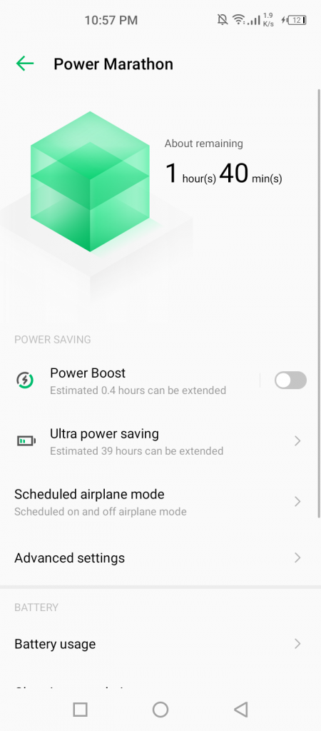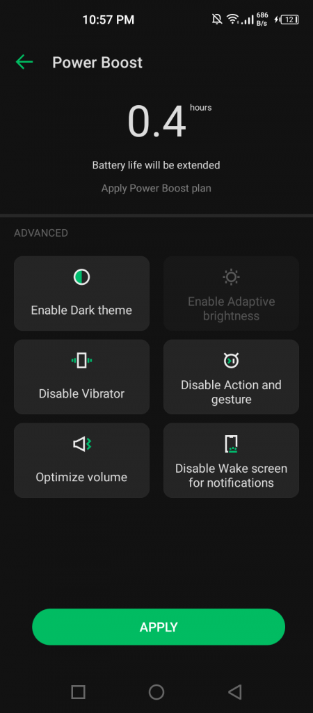 The official battery optimization app o the Note 8 increases the duration of the battery by changing some settings as well as switching off some features. Fr exaple when turned ON it enables the Dark theme, adaptive brightness and disables the vibrator. These might seem like small changes but the time left after wnabling Power boost is usually a lot.